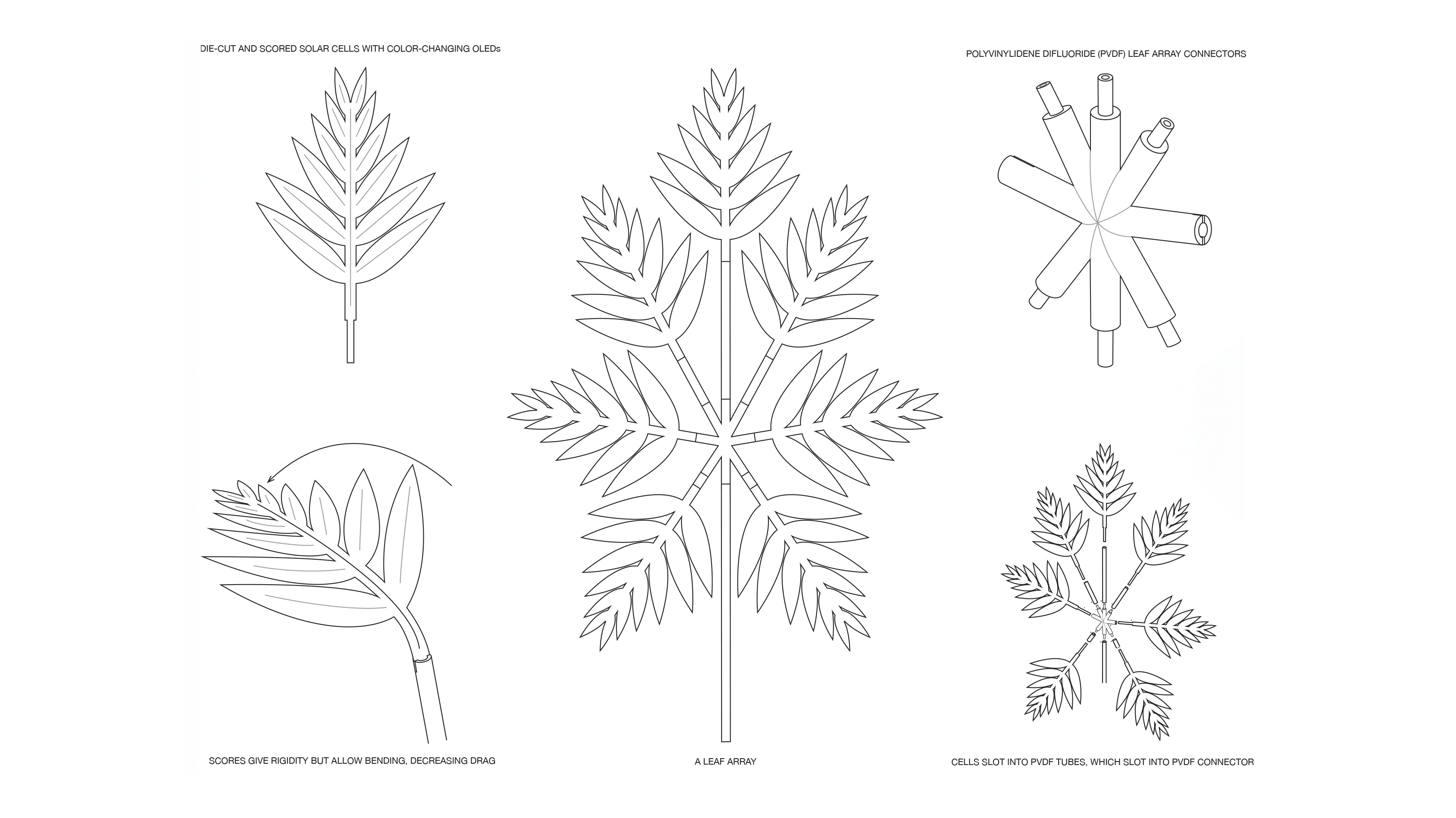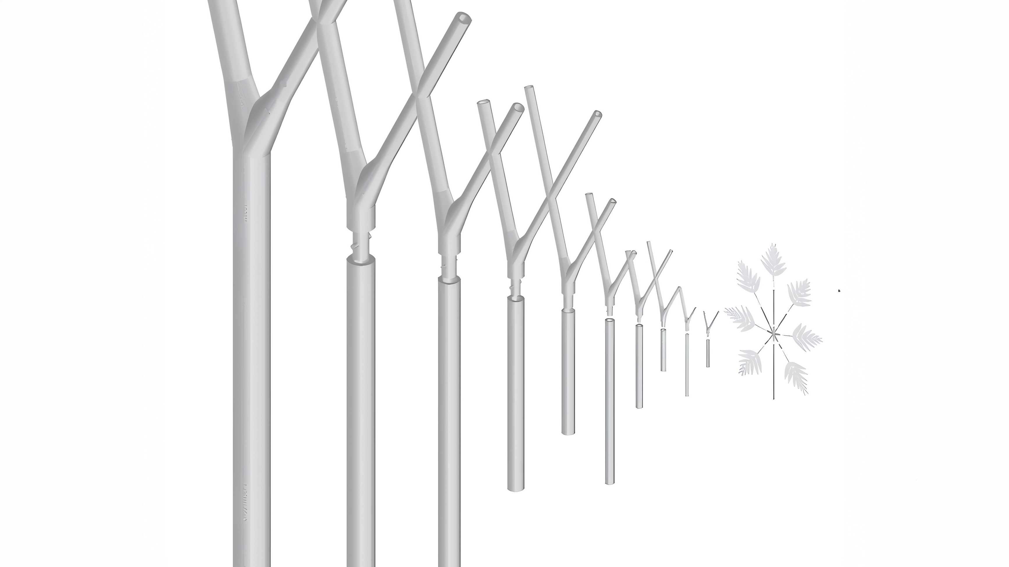 TWP employs a novel application of the Fibonacci sequence, a mathematical series initially described by Acharya Pingala over two thousand years ago. Previous synthetic solar tree designs often lacked the inherent structural stability and optimal surface-area efficiency characteristic of natural tree forms. The current design approach utilizes Leonardo da Vinci's area-preserving rule, ensuring the combined cross-sectional area of branches does not exceed the trunk's cross-sectional area.