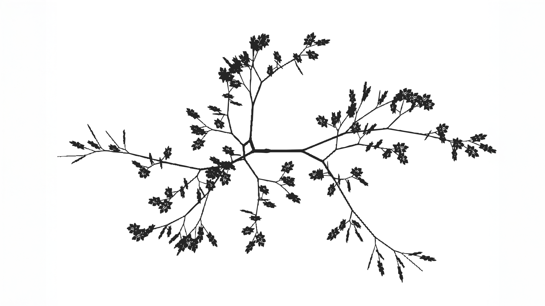 Inspired by nature's efficient designs and guided by Leonardo Da Vinci's "area-preserving rule," the installation achieves structural efficiency through a fractal algorithm. Straight, standardized aluminum tubes are methodically assembled, generating a complex yet efficient branching system. This method ensures that the total cross-sectional area of the branches matches that of the trunk, optimizing strength-to-weight ratios.