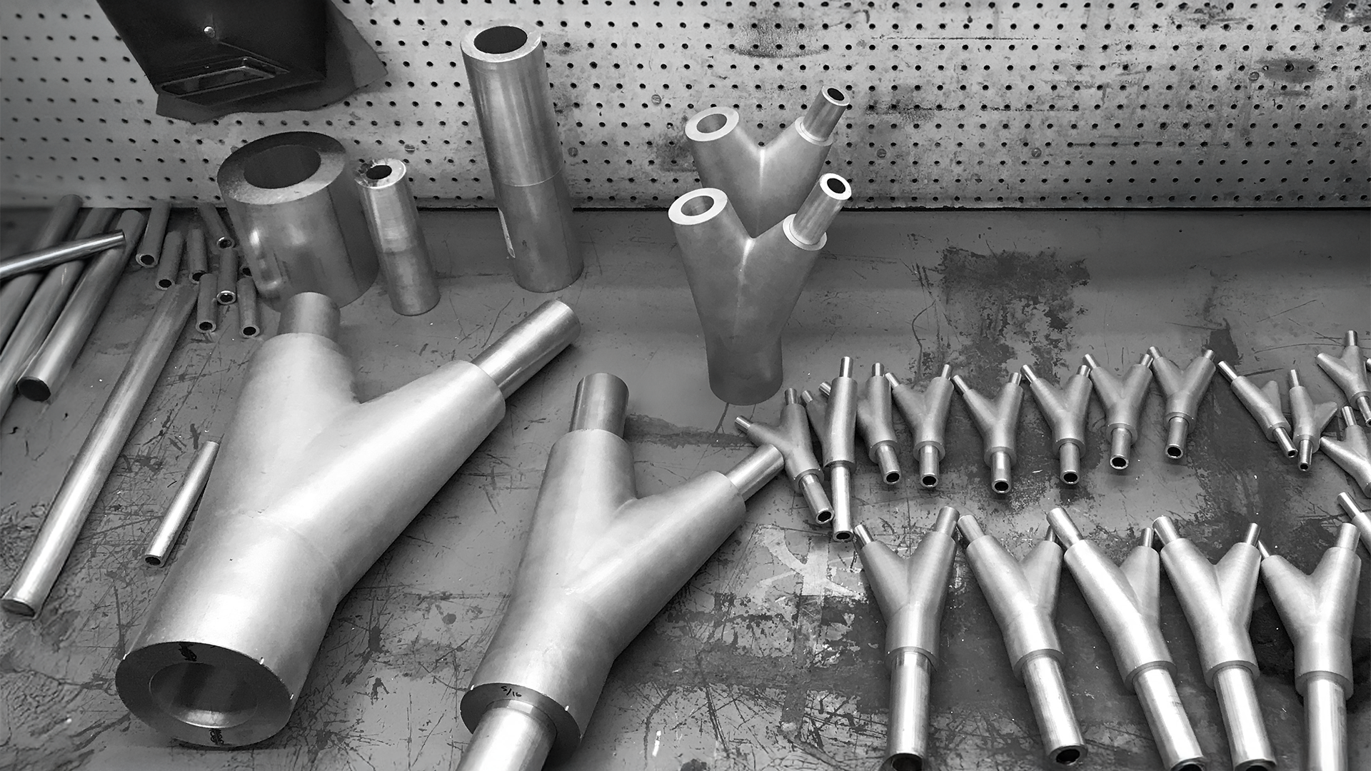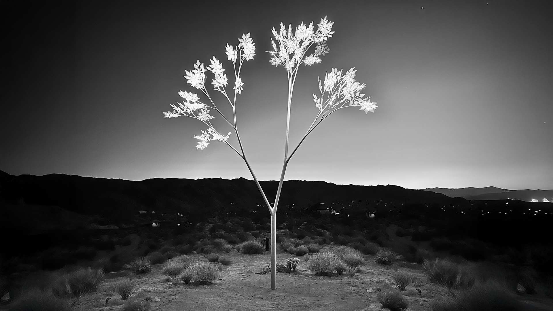 Inspired by nature's efficient designs and guided by Leonardo Da Vinci's "area-preserving rule," the installation achieves structural efficiency through a fractal algorithm. Straight, standardized aluminum tubes are methodically assembled, generating a complex yet efficient branching system. This method ensures that the total cross-sectional area of the branches matches that of the trunk, optimizing strength-to-weight ratios.